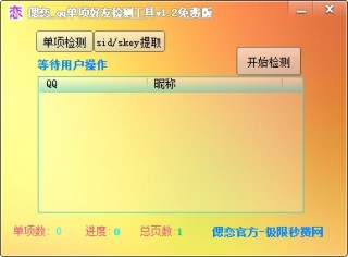 偲恋QQ单项好友检测工具专为QQ用户设计,它能帮你查询出哪些好友是单向好友,如果你被人从qq好友名单里删除了,而你自己的列表还是由他,那么这款软件能够帮你查询出来,为你进行快速进行QQ单向好友查询,检测出已经将你删除的单向好友,方便用户更好的进行好友管理。