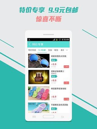 保鲜期返利具有返利购,商城,以及足迹购买等功能模块,并且特别加入了特价专享区,物美价廉惊喜不断;还有9块9包邮哦!