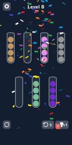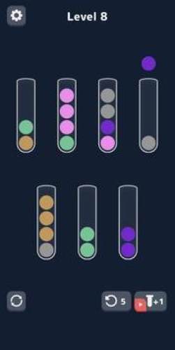 3、操作轻松点击就能控制各种试管,将所有相同颜色的小球倒在一起。
