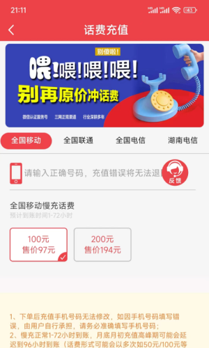 话费充值