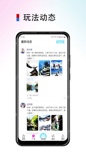 - 自己认为对玩有一定见解的,会玩且能玩出新花样的人都可以在APP上发布相关玩法及视频,也可以带人去一起玩。