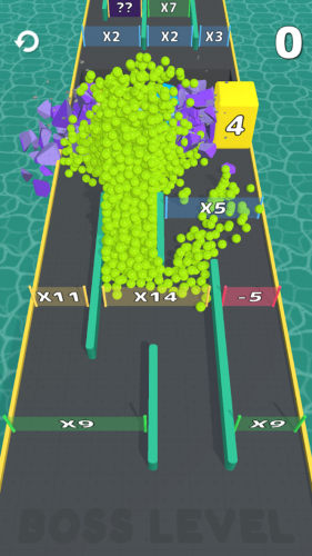 3、每个球都用大炮发射,并击倒所有障碍物。
