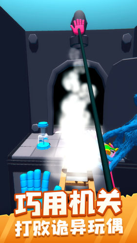 需要小心的是,工厂中还有危险玩偶出没,巧用机关智取,打败玩偶!