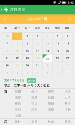 3、装修吉日。既能随时随地地满足您看公农历,又提供你对装修日子选择的参考。