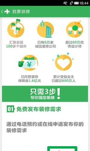 4、装修一站式服务,为您提供免费设计、免费验房、免费报价等申请通道。