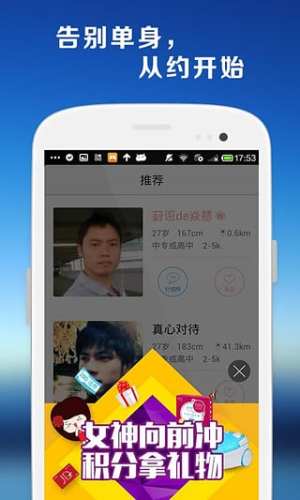 去约会是一款能结交同城美女帅哥的社交软件,在这里,每张照片都更加的真实,让你对她(他)的映象一目了然。去约会安卓版私聊什么的十分的方便了,那搭讪什么的就更加的自在了,匿名沟通,实名相见,想怎么约会就怎么约哦。