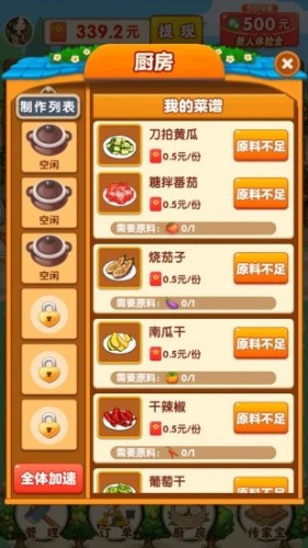 再花费游戏币获取更多的可种植农作物与食谱,不断发展自己的农家院。