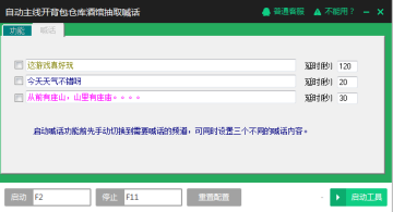 魔法天堂自动主线脚本除了支持自动开背包仓库、自动免费收取酒馆外,还提供了自动喊话功能,一次可设置三个喊话内容,并能自定义喊话间隔时间。