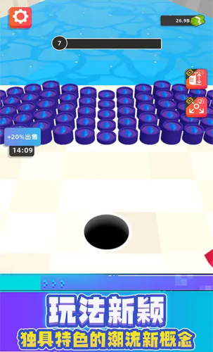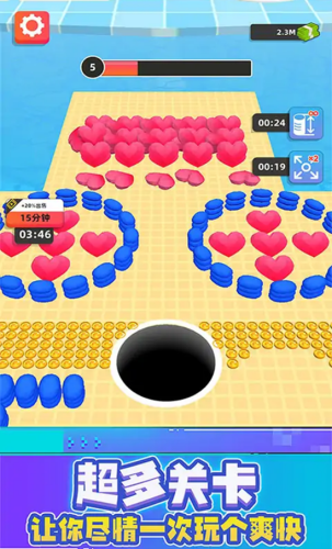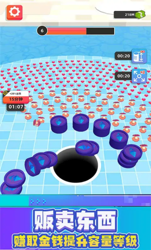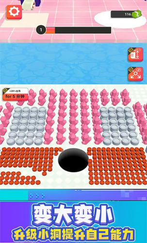 白块收集大作战游戏也是比较经典了,很解压的黑洞玩法,一路吞噬任何的物品,但是要小心一些陷阱和障碍,收集的物品能够为你兑换金币来进行升级。