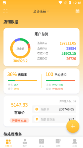 2、有术APP,打通多门店数据,提供销量、库存、利润、账款、会员情况等批发/零售的核心关键数据统计分析,让经营情况一目了然。