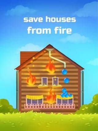 着火的房子是一款简单有趣的益智闯关,玩家将体验一种全新的灭火方式,控制水罐中的水球自上而下扑灭火焰!