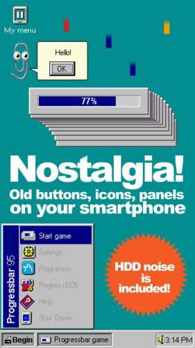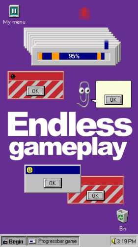1、Win95进度条,一款怀旧的休闲手游,游戏以Win95操作系统的进度条为游戏内容,让玩家不断的去填充进度条来进行游戏。