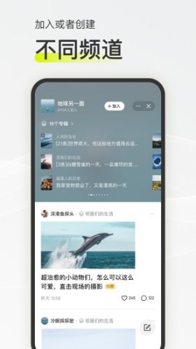 - 你可以加入你感兴趣的频道,与其他同好一个建设一个兴趣社区。