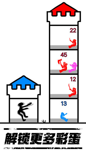 火柴人世界模拟游戏,一款集合爬塔战争的休闲小游戏。玩家操控你的电摇火柴人爬塔闯关,不断提升战力装备武器,对抗每层的BOSS,消灭各个塔楼boss,拯救公主。
