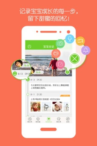 1、宝宝日记(包括怀孕日记):记录从小宝孕期开始一点一滴的成长,随时随地随心拍;