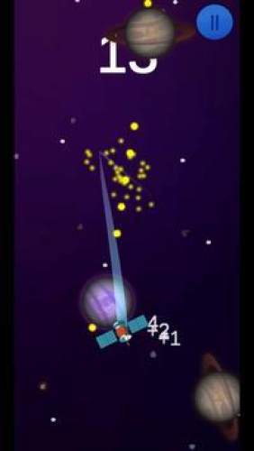 2、点击屏幕以使卫星开始移动,收集星星以增加点数。