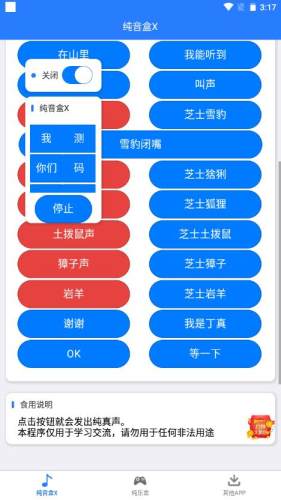 2、纯音盒X语音包,点击即可播放,支持悬浮框设置。