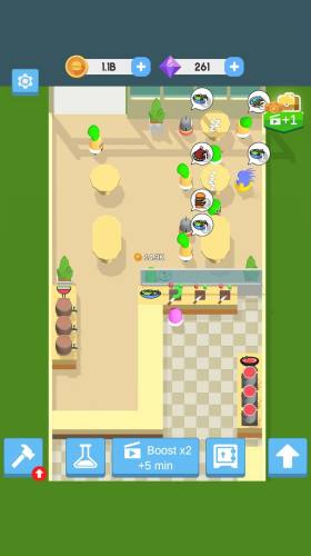 在游戏中每天都会有非常多的顾客来光临你的小店,每一个来到的顾客都拥有不同的需求,玩家可以根据自己经营的小店来规划一个目标,你需制作出让他们满意的食物才行,这样玩家就可以不断的扩展自己的餐厅慢慢的做大。