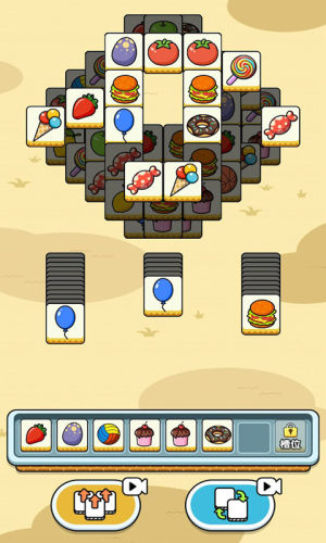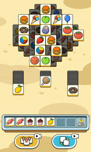 2、同层可以三消的就先消除同层,没有的话就需要查看下一层的物品,然后将需要的物品的上方的道具放置到槽中获得下方的道具。