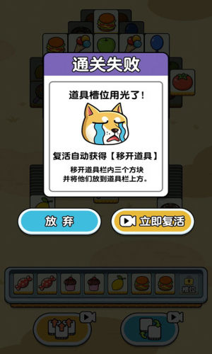 1、首先不能让下方的消除槽满掉,不然就会失败,消除槽不要有超过三个不同的物品,如果最后一个物品槽放上物品没有消除的话就会失败。