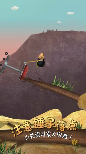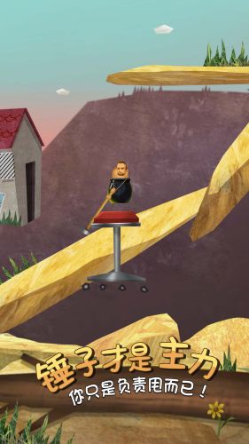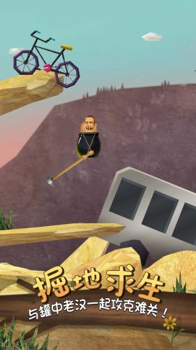 2、游戏中玩家们将化身为一个住在罐子里的老汉,通过练习使用锤子进行爬山;