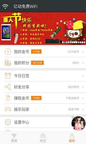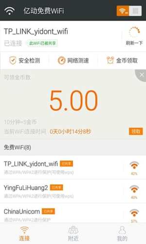 亿动免费WiFi,WI-FI免费连,金币免费领。