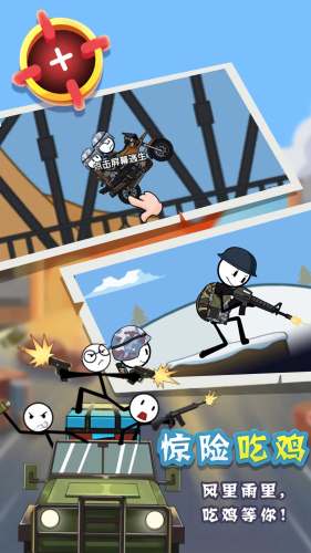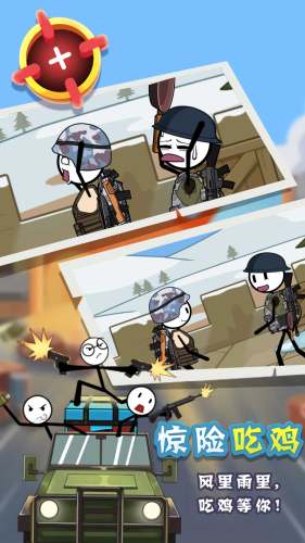 火柴人吃鸡战争是一款射击吃鸡游戏,全新的吃鸡战场正式开放,大量玩家参与进来一起战斗,你需要带领自己的队伍来争夺吃鸡冠军,展现你的射击实力!