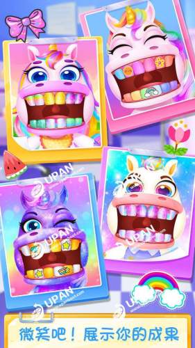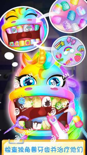 2、卡通的游戏画风,萌萌的独角兽们会来找你解决关于牙齿的问题;