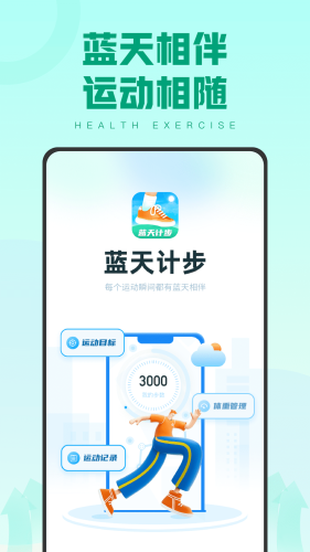 蓝天计步app下载,一款陪伴大家一起健康运动生活的小助手,通过蓝天计步app记录运动数据,进行健康小测评,打卡健康生活目标,养成好习惯,欢迎下载。