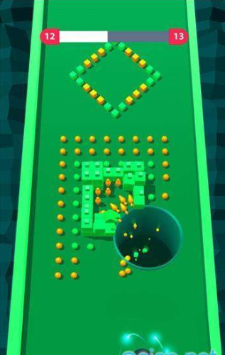 3、游戏的玩法非常简单,在收集屏幕上控制小球左右移动向前快速前进,遇到障碍左右闪避