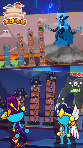 英雄塔楼,一款休闲爬塔对战小游戏,这款游戏在抖音上非常火爆,玩家操控你的勇士爬塔挑战,每层塔楼BOSS不同,各个怪兽对抗,提升战力看看你能爬到多少层。