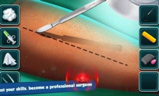 使用手术刀、注射剂、镊子、药膏、创可贴等医疗工具进行操作游戏。