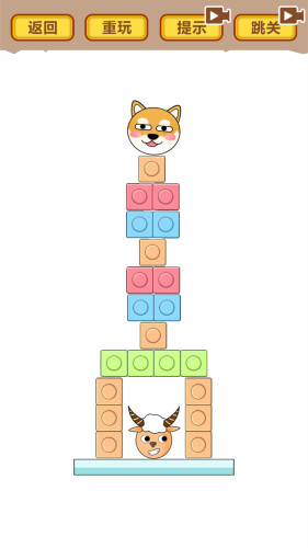 休闲益智同时充满轻松氛围的解压游戏。玩家将帮助狗狗抽掉积木块,使得狗狗可以安全的落在平面上。整个游戏充满搞笑诙谐的氛围,但每一次抽出积木都需要十分谨慎,快来感受一下吧!