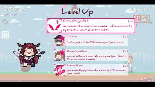 途中将飞过或击中许多物品,如增加推进力消耗次数的希望汽水(Hope Soda),提供额外推进并直接动手丢人的死神 Mori Calliope,撞到弹更高更远的香蕉,或是缓速的美味肉球,或是会终结IRyS飞行、使其驻足欣赏的老婆「BAE」Hakos Baelz 公仔。