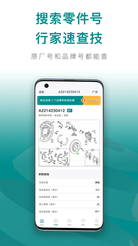 识别车架号(VIN码),按车型查零配件,按零件号查配件,还能了解到同城谁有卖。