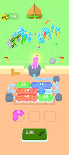 按钮群战有着自动按钮的放置玩法,通过排布按钮,让武器根据程序来自动射击,让敌人不能靠近,射击敌人或者更多的金币,可以用来升级你的设备。