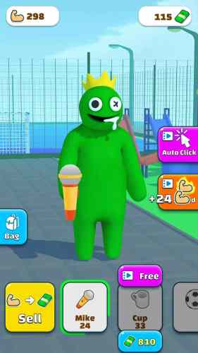 彩虹朋友健身是以彩虹朋友为主角的点击模拟游戏,感觉没有动力去健身房?让彩虹朋友为您解决这个问题!你的目标是通过举起他周围的所有物体,将一个瘦弱的人变成一个强壮的人。