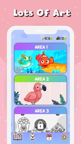 皇家艺术像素是款好玩的休闲益智手游,各种图画任你选择,完成不同的拼图挑战吧,趣味解压的游戏内容也十分考验玩家的耐力,在最短的时间完成挑战吧,感受全新的游戏乐趣,不要错过哟!