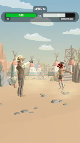 2、面对面的开枪,看谁先死,这是一场非常刺激的赌命游戏,考验牛仔枪技。