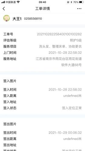 服务人员可以签入、签出工单,上门对老年人提供养老项目的相关服务