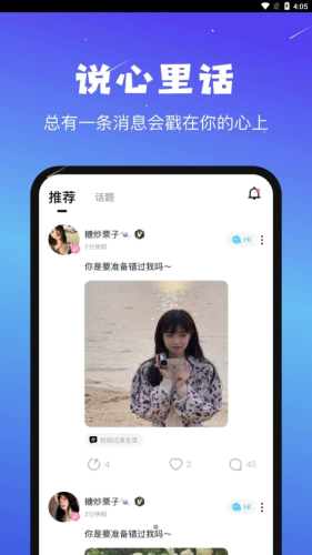 分享生活点滴,边玩边聊边交友,找到喜欢的声音,告别孤单的生活,开启浪漫的相遇。