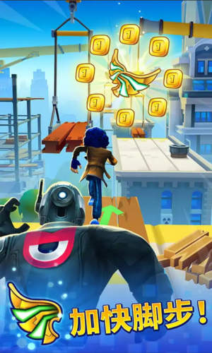 超级好玩的跑酷游戏,游戏以国际化城市的地铁轨道为游戏地图,因此在这里玩家们需要早地铁的铁轨上进行跑酷,所以玩家们需要在吃金币的同时,还需要注意躲闪来往的火车。