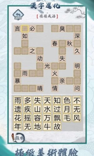寻找过关的奥秘吧,你将操作汉字达到过关的目的,关卡数量丰富,值得体验!