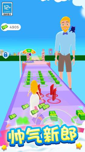 以筹备婚礼为题材的动作跑酷游戏。玩家在通关过程中,需要陆续完成和选择制作婚纱、加工婚宴蛋糕、挑选DJ等婚礼筹备的经典项目。