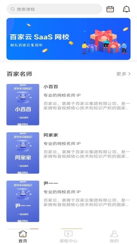 百家云校专业版app是一款在线教育学习平台,平台拥有丰富的课程内容,多样化的学习方式,新思想,新理念,新技术,新流程,帮助用户更好的学习提升。