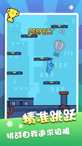 按住屏幕积蓄能量,松开即可让瓶子跳跃。小心不要跌落!