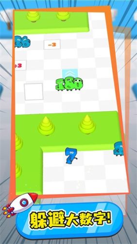 1、游戏的画面非常的简洁,让玩家在进行操作的时候可以对整个画面进行观察,来灵活的躲避比自己个头大的数字。