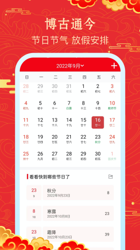 ②界面简洁,不冗余,凸显中国风,做优质准确的中国日历万年历!