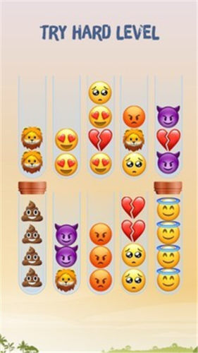 表情排序是一款充满趣味的排序闯关类手游,这款游戏在当下非常的热门火爆,受到了无数游戏爱好者的追捧,而且游戏还有非常独特的设定,你要将所有的表情包进行合理的排序,在不同的试管当中,都有不同的表情包等着你去调整,只要将相同的表情包排放在一起就可以成功的过关,开启新的游戏关卡和挑战。