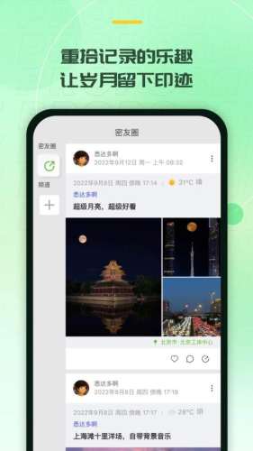 在这里,你可以重构朋友网络,轻松随手记录,让匆匆岁月留下印迹,让时间成为时光。